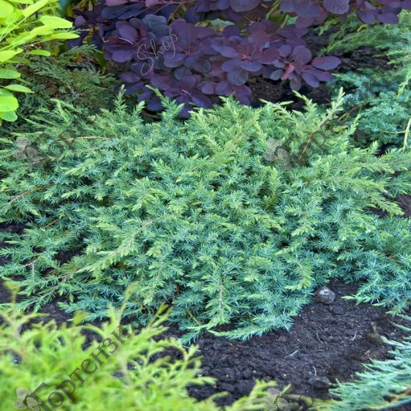 Можжевельник стелющийся 'Шлагер' Juniperus conferta 'Schlager', также известный как японский стелющийся можжевельник, представляет собой впечатляющее вечнозеленое растение, характеризующееся густым, ковровым ростом. Хвоя сине-зеленая, зимой приобретает бронзовый отблеск, и  выглядит привлекательно круглый год. Это неприхотливое в уходе растение идеально подходит для солнечных и частично затененных мест и хорошо растет на хорошо дренированных песчаных почвах. Японский стелющийся можжевельник вынослив и не требует особого ухода, что делает его прекрасным выбором для садоводов, ищущих простое, но декоративное решение. Благодаря своей выносливости Juniperus conferta 'Schlager' идеально подходит в качестве почвопокровного растения, для укрепления склонов или для озеленения альпинариев. Его густые ветви также служат защитой и средой обитания для многочисленных насекомых и мелких животных, что делает его экологически ценным дополнением к любому саду.