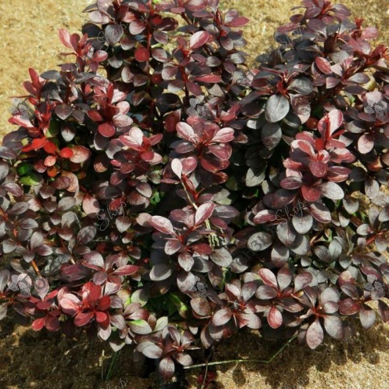 Барбарис 'Тунберга Дартс Ред Леди' Berberis thunbergii ‘Dart`s Red Lady’ - невысокий кустарник с густой, подушкообразной кроной и многочисленными побегами высотой до1,0 м. и диаметром кроны до 1,0 м. Листья мелкие, темно-пурпурные, слегка блестящие, удерживающиеся на кустарнике до поздней осени, осенью - ярко-красные, цветки жёлтые с красными пятнышками и полосками. Цветёт в мае. Плоды продолговатые, кораллово-красные, блестящие. Созревают в первый месяц осени и остаются на кусте почти до весны. Светолюбив. Зимоустойчив и засухоустойчив.