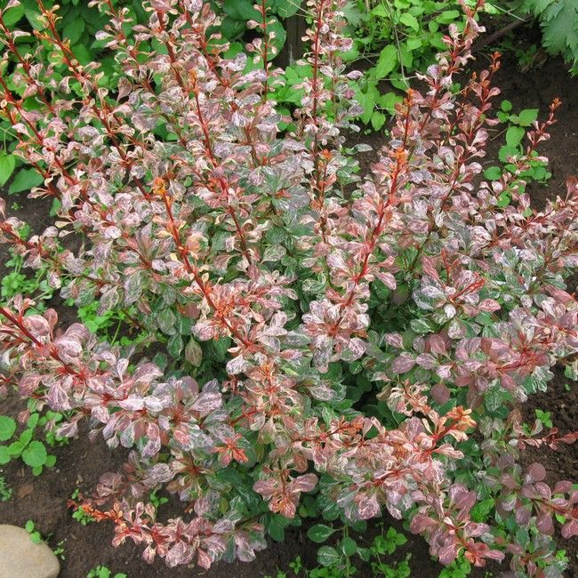 Барбарис Тунберга Наташа (Natasza) – красивый,раскидистый кустарник, с пестрой окраской. Крона густая. В высоту и ширину - 100 см. Молодые ветви растут прямо в верх, с каждым годом разветвляясь и обвисая к земле. На ветвях расположены небольшие шипы. Растение начинает обильно цвести в мае, кремового цвета цветками. Осенью созревают плоды красного цвета. Все сорта барбариса любят солнце, поэтому высаживать их рекомендуется на открытых участках с постоянным солнцем, чтобы декоративность листьев не утрачивалась. Сорт устойчив к засухе, жаре и морозам. Любит увлажненные и плодородные почвы.Сорт Наташа часто используется для формирования ярких ландшафтных композиций или для групповых посадок. Саженцы дополняют городские парки или участки вблизи усадеб. Единственное, что может губительно сказаться на состоянии растения – это застой влаги в грунте.