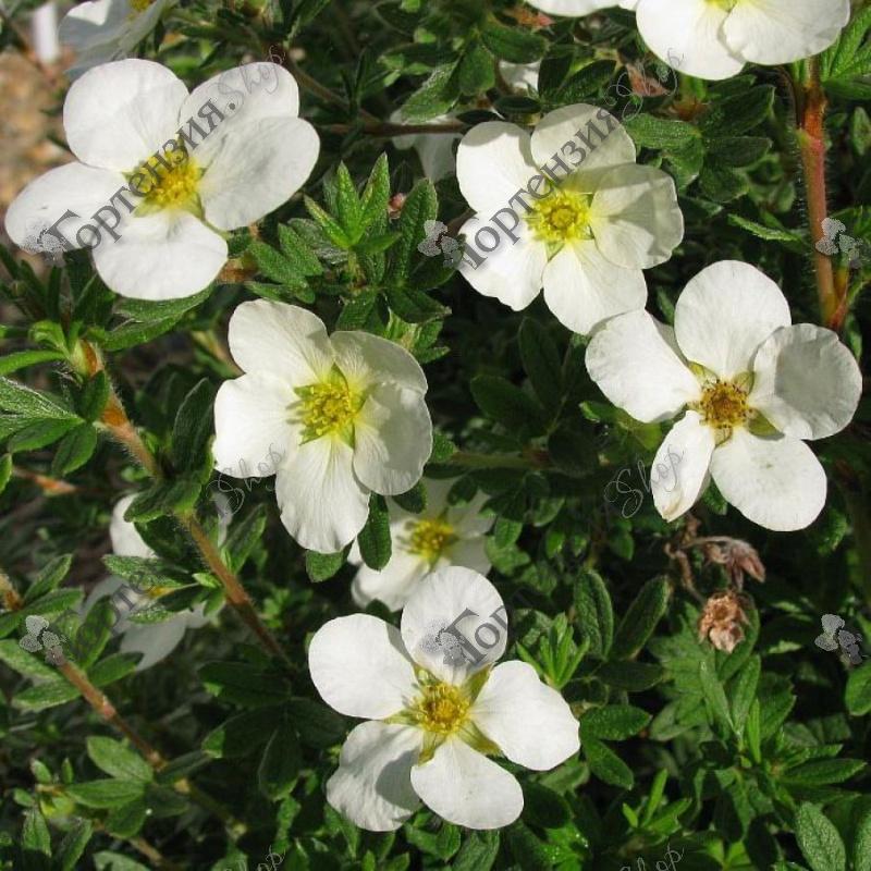 Лапчатка кустарниковая МакКейс Уайт (Potentilla fruticosa McKays White) - кустарниковое растение высотой и шириной 70 см с округлой плотной кроной, зелёными листиками и белыми цветами. Прекрасно подходит для создания бордюров и живых изгородей, садовых и парковых композиций.
