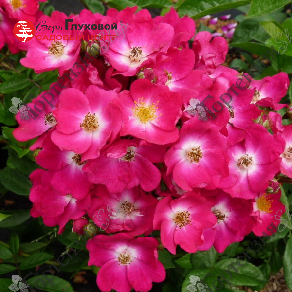 Roза полиантовая 'Red Ballerina ' -  очаровательная  кустовая роза высотой до 120см. Цветки немахровые, малиновые с белым центром, оттеняются ярко-желтыми тычинками. Цветки  мелкие, но появляются в крупных кистях, обычно по 20-60 шт, и привлекают  к себе внимание в саду . Листва ярко-зеленая, тонкая, блестящая. Куст ветвистый, все время выпускает новые цветоносные побеги, его можно пустить виться по стене, как плетистую розу. Довольно устойчив к болезням. Цветение с июля по сентябрь.