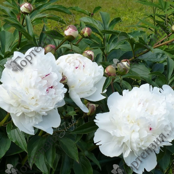 Пион молочноцветковый  Ширли Темпл - осыпанный пышным облаком цветов околдовывает своей красотой и изящностью! Достигает в высоту до70 см. Листья темно-зеленые, крепкие стебли. Цветет с мая до середины июня пышными бутонами нежно-розового оттенка, которые позже становятся чисто-белыми и радуют приятным ароматом. Независимо от цветения, куст сохраняет декоративность до поздней осени. Сорт хорошо зимует и переносит непродолжительную засуху. Побеги устойчивы к заболеваниям.